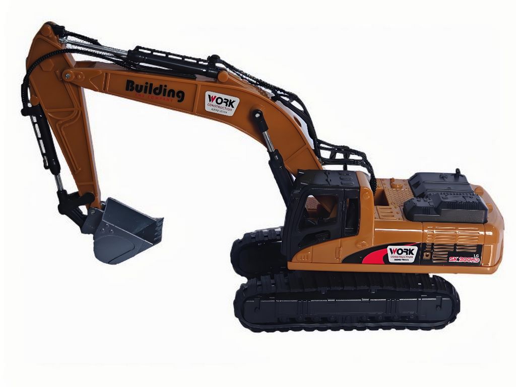 Spray black paint on the tracks, counterweights, and other parts to simulate the “metallic texture” of a real excavator;