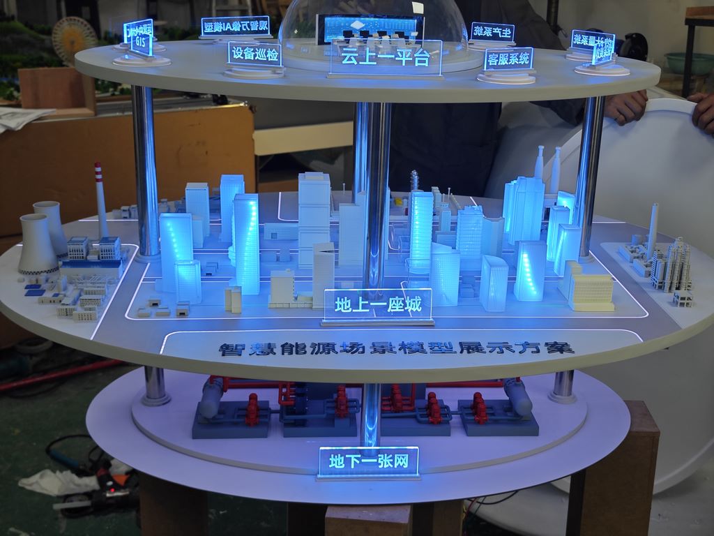 This model vividly interprets the overall architecture and operational concept of smart cities through the precise combination of materials, craftsmanship, and lighting.