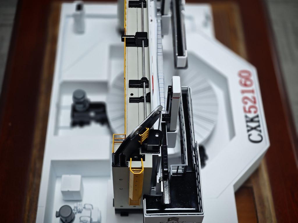 The production of detailed components is particularly crucial: the yellow safety barrier is made using precision etching technology to accurately reproduce the standard structure; The pipeline system is arranged according to functional zoning, and the direction conforms to the engineering logic; The brand logo uses high-definition water sticker technology to ensure clear and recognizable text. Special positioning fixtures are used during final assembly to ensure the installation accuracy of each component.