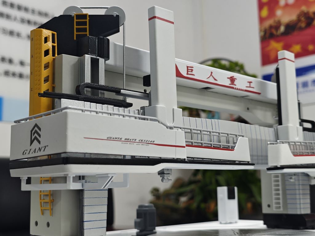 This production is a display model of the “Giant Heavy Industry CXK52160” CNC machine tool, specifically designed for enterprise product display and technical exchange. The model needs to accurately reproduce the main structure, functional zoning, and brand identity of the machine tool, with a focus on showcasing the technological sense and precision characteristics of modern heavy-duty machine tools. The production goal is to achieve over 90% appearance restoration through precise processing techniques, showcasing the industrial aesthetics of the machine tool.