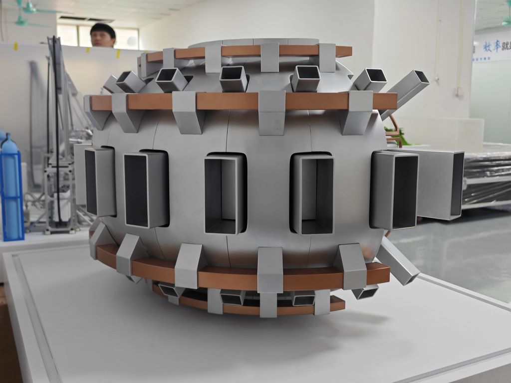 This plan aims to accurately reproduce the silver gray spherical device model shown in the picture. The core features of this model are its standard spherical shape, rectangular openings and sensor structure with regular surface distribution, unique brown ring shaped components at the top, and overall industrial instrument texture. The production needs to focus on the roundness of the sphere, precise positioning and edge treatment of the opening, as well as the color matching of silver gray and brown, ultimately achieving a visual restoration of over 90%.